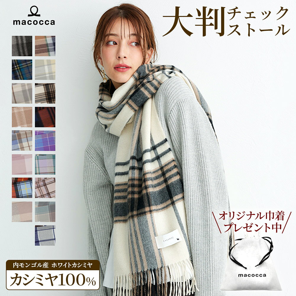【楽天BOX受取対象商品(レディースファッション)】 ■商品関連キーワード カシミヤ 100% 大判 ストール チェック スカーフ レディース カシミア 送料無料【楽天ランキング1位】 パーソナルカラー やわらか 無地 新作 ビッグサイズ メンズ マフラー 秋冬 大判 ストール プレゼント 売れ筋 クリスマス ギフト 高品質 秋 冬Item Detail サイズ 幅約60cm × 縦約200cm (フリンジ10cm × 2含む) 素材 カシミヤ100% 重量 約260g 洗濯表記 生産国 中国(内モンゴル) 商品説明 macoccaのカシミヤストールは、検査機関で品質検査をしたカシミヤ(内モンゴル産)100%。密度が高く、光沢の入り方にも品があります。 本物のカシミヤの肌触りと暖かみを感じてください。豊富なカラバリなので、シーンやスタイリングに合わせてお好みでお選びいただけます。パターンが豊富なので色違いで集めることをおすすめします。 【ORIGINAL GIFT BOX】上質なカシミヤストールは、大切な方へのプレゼントにぴったりです。ギフトラッピングご希望の方は別ページへ。 【なめらかで気持ちいい上質な肌触り】しっとりしたなめらかさで、首元を包み込む極上の心地よさ。カシミヤならではの滑らかな肌触りは、一度触れると手放せなくらるほどの特別感です。 【とっても軽くてストレス知らず】様々なシーンで使いやすいちょっと大きめサイズがいい。しかも軽くて、長時間の仕様も快適に…。そんなお客様のご要望に応えるマコッカのロングセラー。 【手洗い可能なカシミヤ100%】ご自身でお手入れをすることで、よりいっそう愛着がわき、長くご愛用いただける、新品にはない、あなたがけの特別な表情へと育っていきます。 【Voice of customer 生カシミヤご購入者様のリアルな声】 「プレゼント用 星5」画面で見るより落ち着いた色合いです。二重で巻くと軽いのにあたたかく、良いお買い物が出来ました。大事にしてくれることを期待しています。 「50代女性 プレゼント用 星5」とても素敵なストールでした。プレゼント用で急いでいたのですが、すぐに発送していただけて本当にな助かりました。相手の方にも喜んでいただけました。ありがとうございました。 「50代男性 プレゼント用 星5」やわらかい肌触りで、軽くて暖かいです。マフラーやストール、膝掛けとして万能に使えそうなので満足です。なんせふわふわやわらかで滑らかな手触りで、ずっと触っていたくなります。プレゼントとしても喜ばれると思いますのでぜひお薦めです。 「ご自分用 星5」チェックアイボリーを購入。可愛いです。白黒ベージュ、デニムといったベーシックな服が多いので、少し首元が華やかになりそうです! 【「feature1」最高級カシミヤ100%採用】マコッカのカシミヤ製品は、呼吸しているかのように通気性に優れ、軽くて薄手でもあたたかく、極上の肌触り。カシミヤの中でも特に繊維の密度が高い最高級の"内モンゴル産ホワイトカシミヤ"を厳選して採用しています。 【「feature2」熟練職人が織り成す上質な光沢】マコッカのカシミヤ製品は、柔らかく上質な光沢感を実現しています。最高級カシミヤ×熟練職人による伝統的な処理を施した製法のみに見られる"煌めくようなは波模様(うねり)"をお楽しみください。 【「feature3」使い込む程に育つ風合い】マコッカのカシミヤ製品は、最高級カシミヤを採用しているため、長年のご愛用デックらと厚みが増します。過度な仕様は控え、ブラシでホコリを除去するなど愛情をそそぎ、自分だけのカシミヤを育てませんか? 【あなたの魅力をさらに引き出すパーソナルカラー】 「イエローベース・春 spring」健康的で明るく、若々しい印象。肌にツヤと血色感が出て、生き生きと見えます。明るくクリアで鮮やかな色が似合います。KEY WORD キュート、フレッシュ、ポップ、カジュアル、活発的チェックライトブラウン、チェックキャロット 「イエローベース・秋 autumn」落ち着いた大人っぽい雰囲気。シックで高級感があり、肌に深みとツヤが出ます。深みのあるこっくりとした色やアースカラーが似合います。KEY WORD シック、リッチ、穏やか、ナチュラル、温かみチェックフォーン、チェッククリーム、チェックオレンジ、チェックサックスブルー、 「ブルーベース・夏 summer」優しげで上品な印象。肌の透明感が増し、爽やかな雰囲気を演出できます。くすみがかったパステルカラーや、ソフトな色合いが似合います。KEY WORD 優美、爽やか、フェミニン、ソフト、エレガントチェックオフ、チェックラベンダー、チェッククリソコラ、チェックローズ、チェックライトピンク、チェックモス、チェックグレージュ 「ブルーベース・冬 winter」クールで華やかな印象。肌の透明感が際立ち、洗練された都会的な雰囲気に。鮮やかでメリハリのある色やモノトーンが似合います。KEY WORD シャープ、モダン、華やか、クール、クリアチェックブラック、チェックダークグレー、チェックアイボリー、チェックネイビーグレー カシミヤの取扱い注意点 着用時