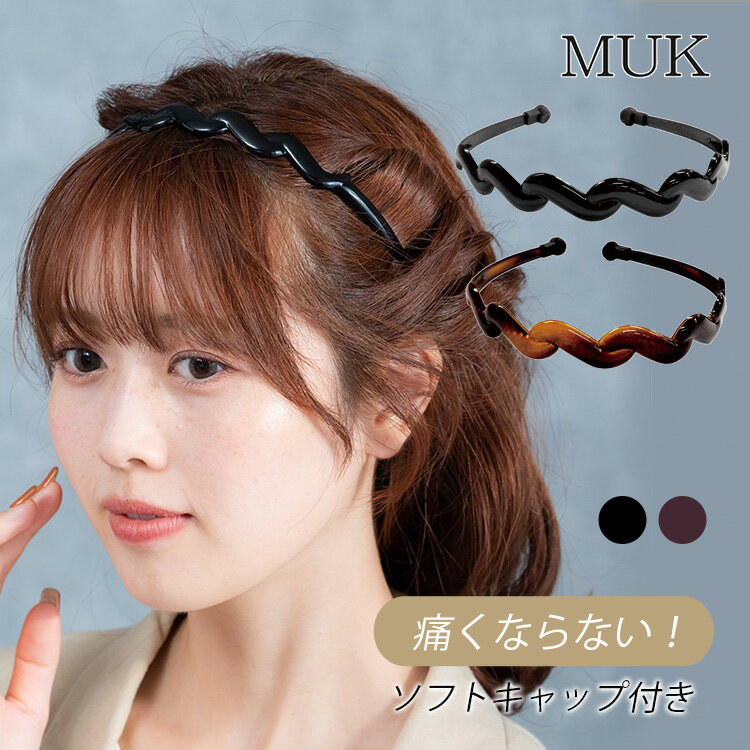 カチューシャ 痛くないカチューシャ 痛くない 痛くならない ずれない ソフトキャップ付き ブラウン 茶色 黒 ブラック ベーシック シンプル安い ノンストレス 日本製 madeinjapan 波 muk プレゼント ギフト クリスマスプレゼント