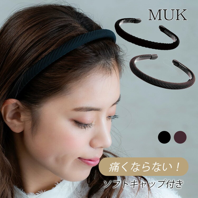 カチューシャ 痛くないカチューシャ 痛くない 痛くならない ずれない ソフトキャップ付き ブラウン 茶色 黒 ブラック ベーシック シンプル安い ノンストレス 日本製 madeinjapan muk プレゼント ギフト クリスマスプレゼント
