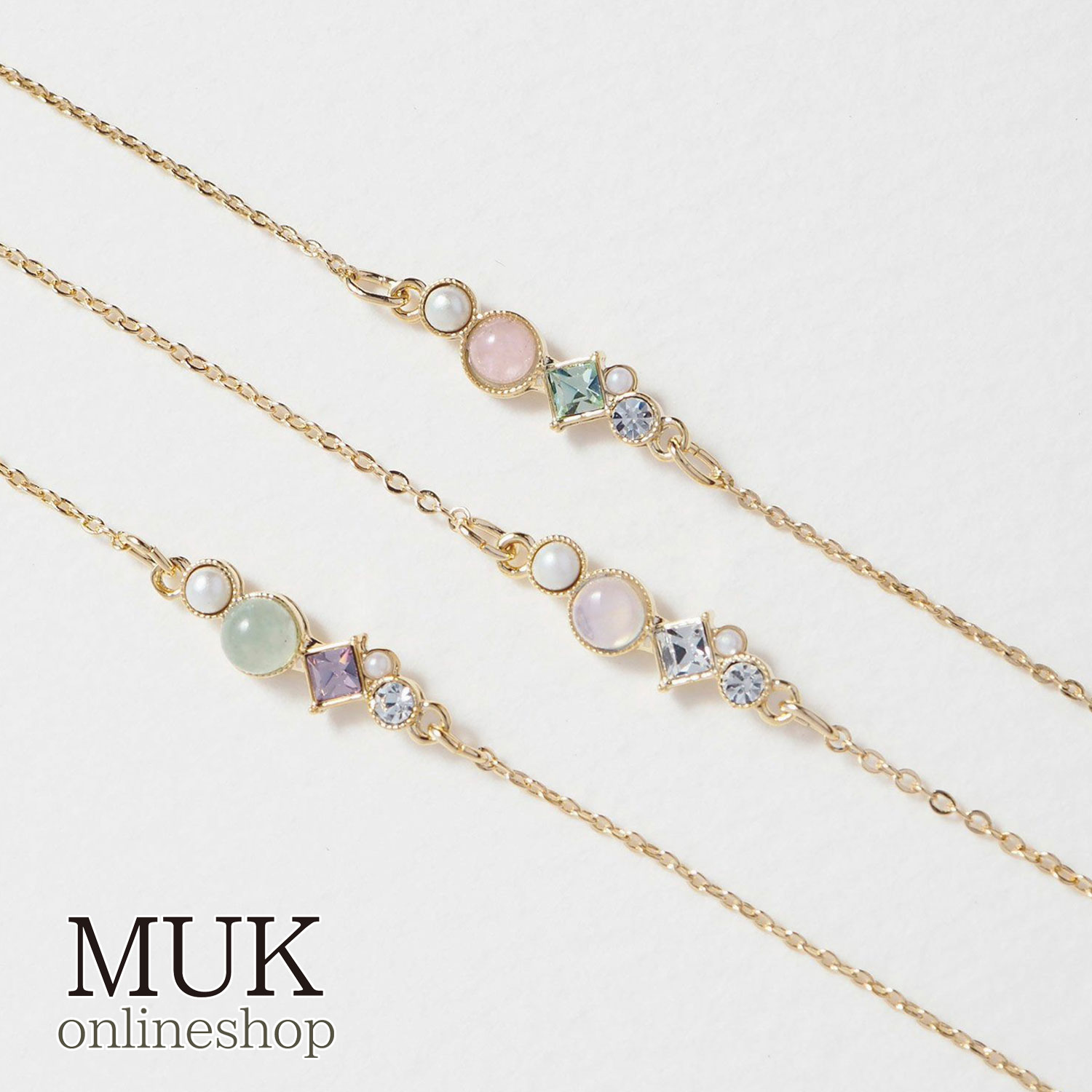 ブレスレット レディース ゴールド チェーン 天然石 ムーンストーン ローズクォーツ アベンチュリン パール ビジュー 誕生石 シンプル 上品 華奢 オフィス 長さ調節 ニッケルフリー 金属アレルギー 対応 日本製 muk dreamy stone クリスマスプレゼント
