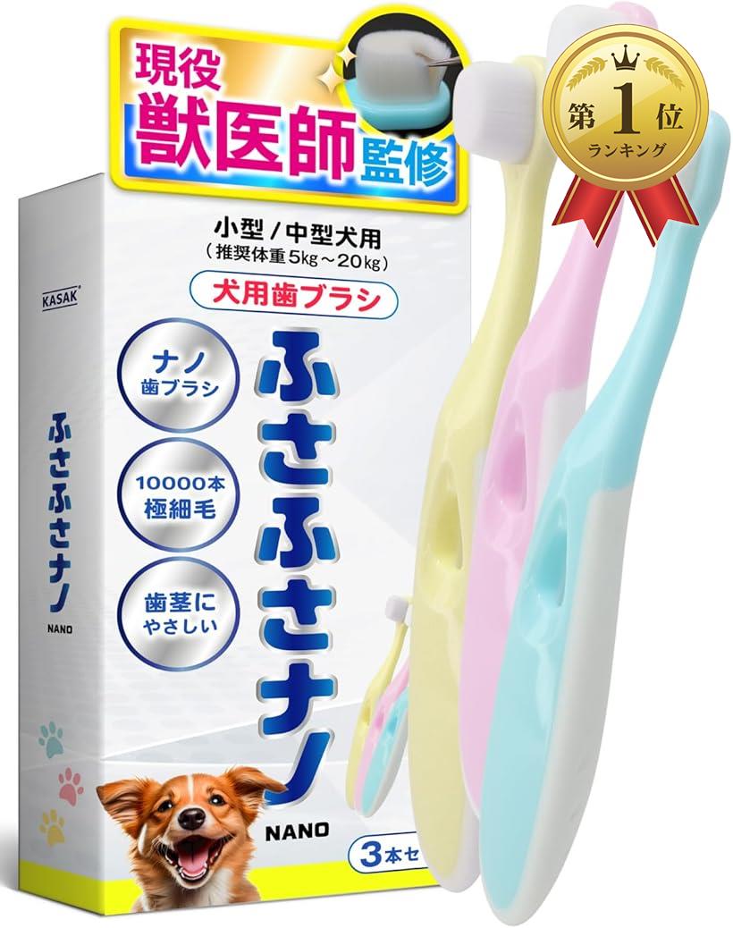 バリエーションコード : 2bjk8hx8ic商品コード2bjk8hx8ic商品名獣医師監修 犬用歯ブラシ 犬歯磨き 小型犬 ふさふさナノ ナノ歯ブラシ 3本セット ブルー、ピンク、イエロー3色各1本ブランドKASAKカラーMulticolor「獣医師 監修」日々たくさんの犬や猫の口腔ケアをしてきた現役獣医師による監修。「極ふさ ナノ歯ブラシ」極ふさ、極細のナノ歯ブラシを採用。歯茎からの出血の心配ナシ。「小さいヘッド」小型犬の口に合わせた小さいヘッドで、奥歯も磨きやすい。「そり返った持ち手」考え抜いた持ち手の設計。そり返った持ち手により、奥歯が見えやすい、磨きやすい。※ 他ネットショップでも併売しているため、ご注文後に在庫切れとなる場合があります。予めご了承ください。※ 品薄または希少等の理由により、参考価格よりも高い価格で販売されている場合があります。ご注文の際には必ず販売価格をご確認ください。※ 沖縄県、離島または一部地域の場合、別途送料の負担をお願いする場合があります。予めご了承ください。※ お使いのモニタにより写真の色が実際の商品の色と異なる場合や、イメージに差異が生じることがあります。予めご了承ください。※ 商品の詳細(カラー・数量・サイズ 等)については、ページ内の商品説明をご確認のうえ、ご注文ください。※ モバイル版・スマホ版ページでは、お使いの端末によっては一部の情報が表示されないことがあります。すべての記載情報をご確認するには、PC版ページをご覧ください。「サイズ」全長135mm、幅23mm、ブラシ部8mm x 14mm