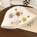 帽子 スター レディース 秋冬 バケットハット 韓国 白 ティーンエイジャー かわいい ファッション カジュアル 小顔効果 ふわふわ 暖かい