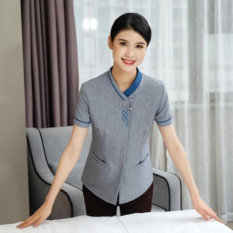 清掃服 レディース メンズ 半袖 吸湿速乾 ホテルスタッフ 旅館 施設 清掃員 作業服 ユニフォーム 春夏用 綿混 ポリエステル素材 トップス 制服