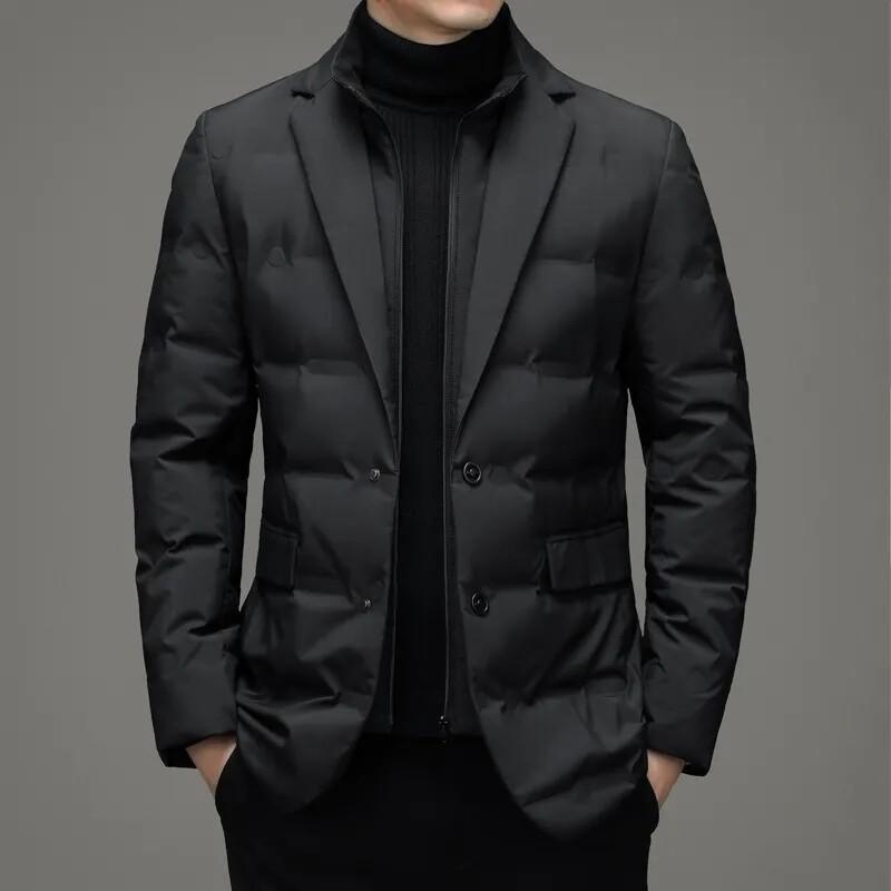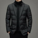 ダウンジャケット メンズ 西川ダウン風 スーツ テーラード 2WAY ビジネス カジュアル 防寒 保温 ライトアウター コーデュロイ ブラック グレー グリーン
