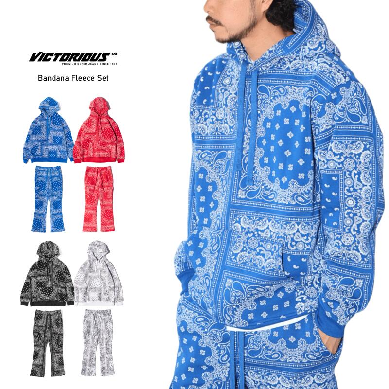 VICTORIOUS ヴィクトリアス 【Bandana Pullover Cargo Flared Fleece Set】 【上下セット】 セットアップ スウェット ペイズリー バンダナ SETUP HIPHOP ブリーカー マーサー ヒップホップ ストリート メンズ ビッグサイズ 大きいサイズ