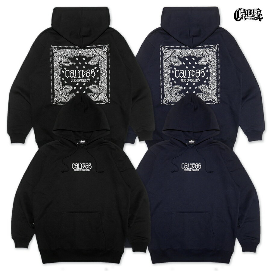 【送料無料】CALIFAS BANDANA PULLOVER HOODIE【BLACK/NAVY】(M・L・XL・2XL)(カリファス オリジナル 通販 服 メンズ 大きいサイズ パーカー プルオーバー スウェット ヘビーウエイト 厚手 バンダナ ペイズリー カリフォルニア ロサンゼルス ウエストコースト ロゴ)