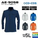 コーコス信岡 シャツ ボトルテック CO-COS エコ・ストレッチ長袖シャツ AE-9058 作業着 作業服 男女兼用 ユニセックス 再生PET素材100%使用 SDGsへの取り組み 環境活動推進 エコ素材使用 SS S M L LL 3L 4L 5L ネイビー シルバー ブルー オレンジ チャコール 大きいサイズ