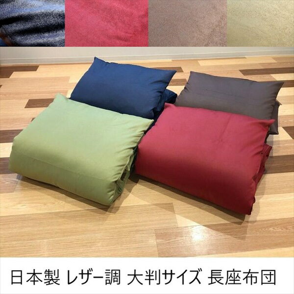 \本日300円クーポン進呈/クッション 座布団 座布団 日本製 レザー調 大判サイズ 長座布団NCleカバー レザー調 ブラウン Lグリーン ネイビー レッド 高級感 座布団3枚分
