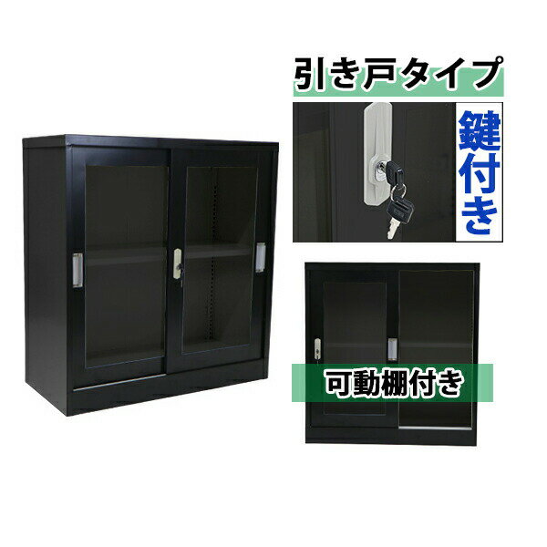 訳あり 送料無料 スチールキャビネット 引き戸タイプ ブラック 鍵付き スペアキー付き 可動棚付き 書庫 スチール製 スチール書庫 保管庫 収納 オフィス 事務所 会社 店舗 病院 学校 業務用 スチール キャビネット 黒 sy10022newbk