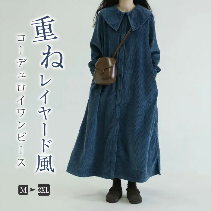 ワンピース コーデュロイワンピース レディース Aライン ロング丈 長袖 重ね レイヤード風 春 秋 秋ワンピ ロングワンピース ゆったり 体型カバー カジュアル マキシワンピ 大人 ビックシルエット ゆるっと 着痩せ