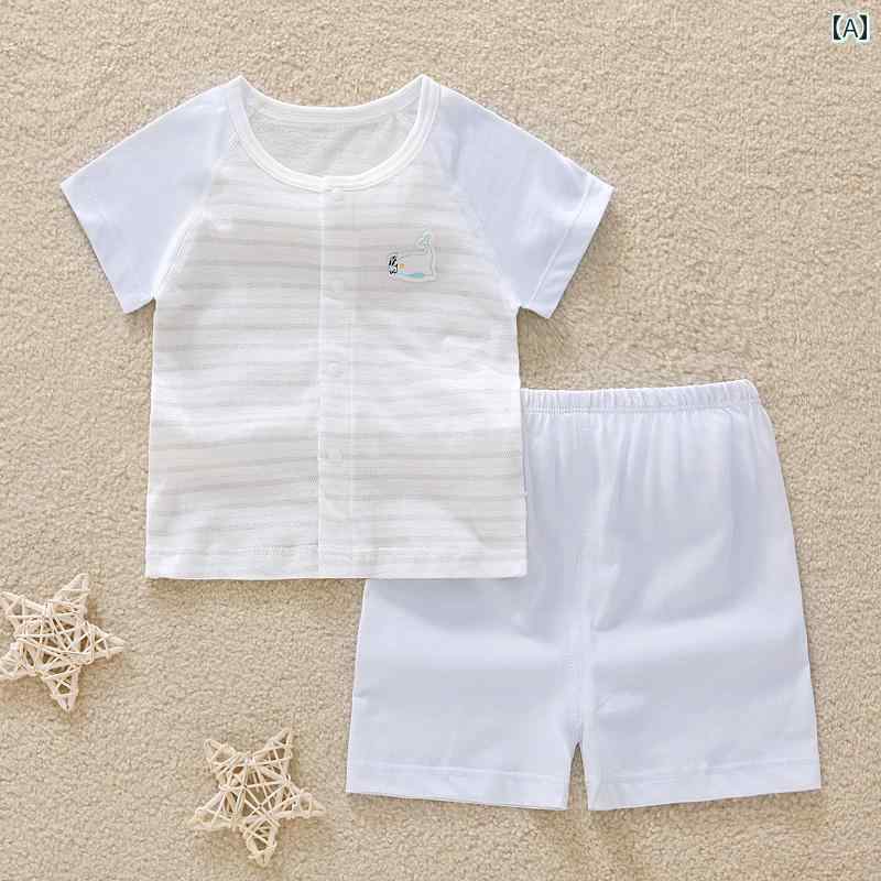 ベビー ウェア コットン プリント 半袖 前開きボタン 丸襟 シャツ ショート丈 パンツ セット カジュアル 薄手 通気性 新生児 夏 男の子 女の子 軽量 ソフト 日常使い プレゼント