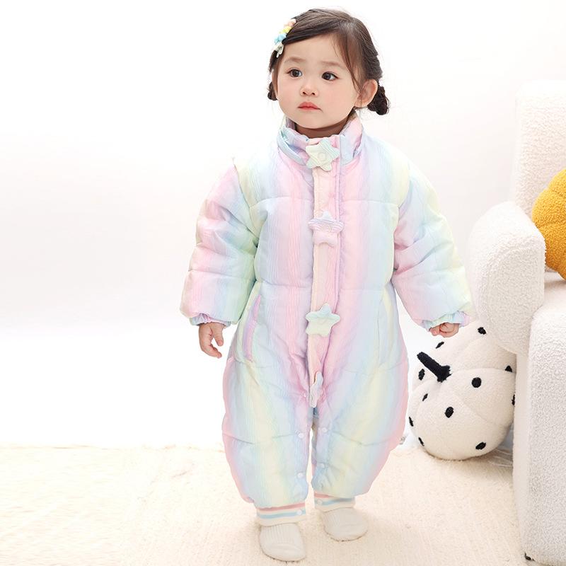 ベビー カバーオール 女の子 赤ちゃん 冬用 ホワイトダックダウン 厚手 暖かい 防寒 グラデーション フード付き お出かけ