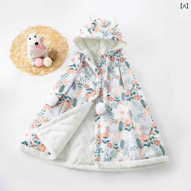 マント キッズ 男の子 女の子 赤ちゃん ベビー 秋冬 防寒 暖かい 厚手 防風 ジャケット フード ウサギ ゾウ カエル かわいい ピンク ブルー グリーン