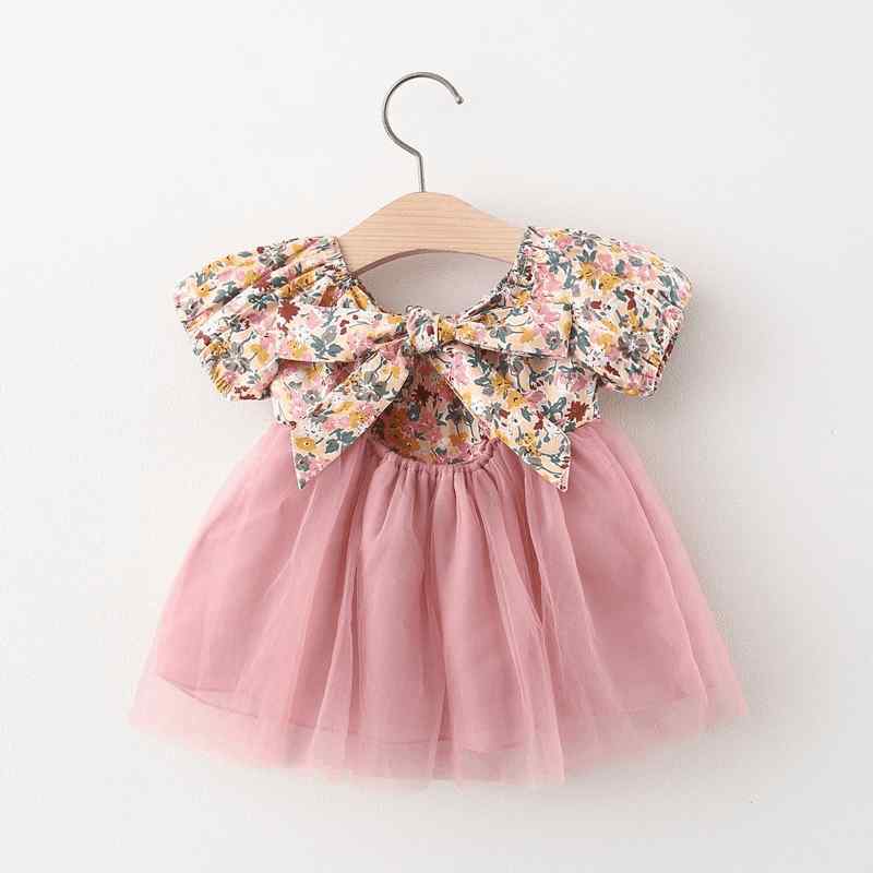ワンピース ベビー 女の子 プリンセス風 小花柄 バックレス チュール Aライン 綿素材 春夏 カジュアル かわいい お出かけ 普段使い リゾート フォーマル ベージュ ピンク 黄色