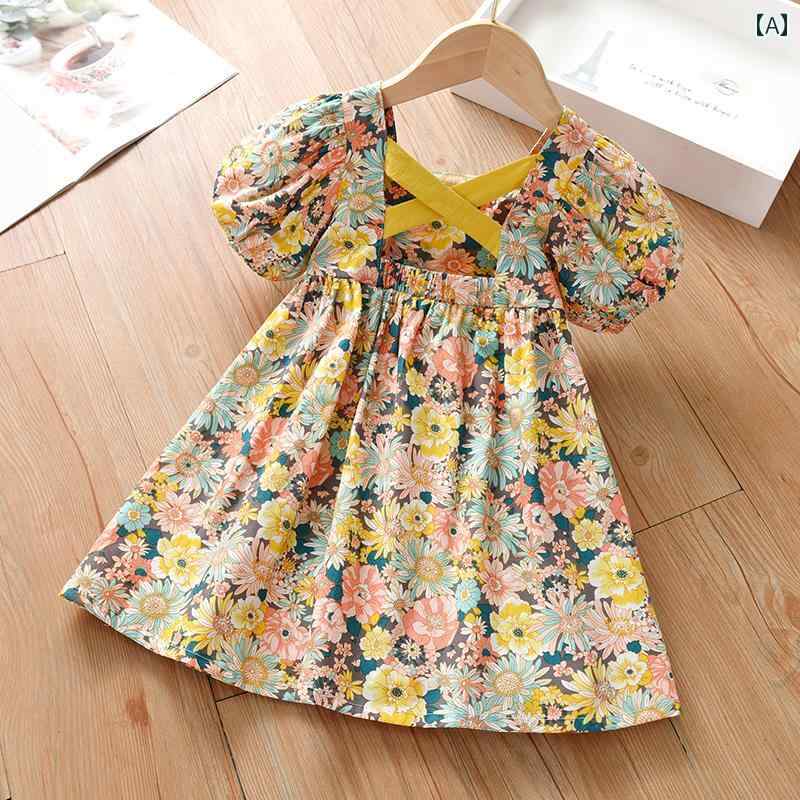 ワンピース 女の子 花柄 ドレス 夏 綿 子供用 半袖 ベビー ドレス 韓国 プリンセス ドレス コットン かわいい