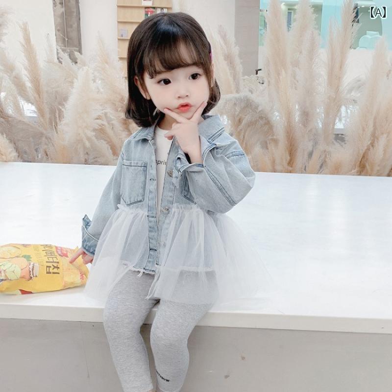 子供服 女の子 キッズ かわいい ベビー 春 スタイリッシュ 幼児 長袖 プリンセス メッシュ デニムジャケット