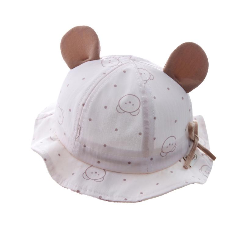 帽子 ベビー 男の子 女の子 コットン 春夏 薄手 軽量 キャラクター かわいい 小熊柄 日よけ UVカット 日焼け対策 広つば サイズ調整可能 普段使い お出かけ バケットハット サファリハット