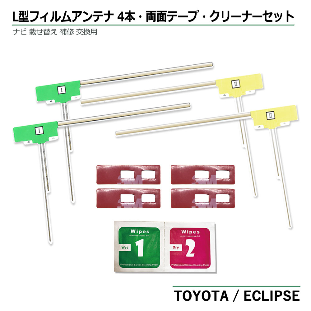 トヨタ NHZA-W60G L型 フィルムアンテナ 4本セット 両面テープ 4枚 クリーナー セット 地デジ フルセグ ワンセグ 高感度 汎用 補修 交換 アンテナ