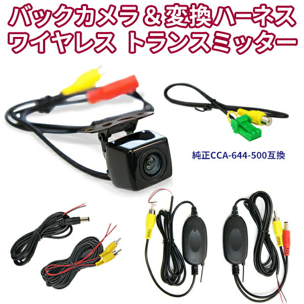 ◆商品詳細◆ バックカメラとワイヤレストランスミッターとバックカメラ変換ハーネスのセット販売です。 バックカメラ変換ハーネス(純正RCH001T互換品:60cm)×1本 ワイヤレストランスミッター送信機×1・受信機×1 バックカメラ本体 約68cm ×1個 電源ケーブル 約1.2m ×1 映像電源ケーブル 約6m ×1 取り付けビス ×2 適合:トヨタ/ダイハツ/イクリプス/AVNシリーズ/AVN-Z/Liteシリーズ ◇バックカメラ◇ 機種色:黒 イメージセンサー:高画質カラーセンサー搭載 映像形式:NTSC 有効画素数:300000ピクセル 水平解像度:420TV本 動作電圧:DC12V 仕様:広角170℃/バックガイドライン付き/防水対応(IP68) ◇変換ハーネス 純正RCH001T◇ トヨタ/ダイハツ/イクリプス/AVNシリーズ/AVN-Z/Liteシリーズ 全長:60cm ※互換ケーブルです ◇ワイヤレストランスミッター◇ 最大到達距離:5m 面倒な配線は一切不要! 内装パネルの取り外しなどに手間がかかるバックカメラの取り付けが簡単にできます。 送信機 受信機の電源配線を接続し映像配線を取り付けるだけで施工時間を短縮。 ほとんどのカメラ、ナビ、モニター、プレーヤーに対応。最大到達距離 約5m。 バックカメラは小型なのに高画質。広角170°のカラー映像を映し出します。CMOSカメラに比べ広角CCDカメラは画質、解像度が断然すぐれ夜間での使用や昼間でも、画質の違いがわかるほどの見やすさです。 角度調整可能でお好きな視点に合わせられます。 【ご注意】 ※取付は自己責任で行ってください 誤った取付をされると車両に重大な支障をきたす場合がございます その場合は、当方は一切の責任を負いません。 ※すべての社外品との組み合わせの動作を保証するものではございません。バックカメラ本体だけをお探しの方 右の画像をクリック♪ ★高画質CCDカメラ★ 広角170℃・バックガイドライン付き・防水対応 CMOSカメラに比べCCDカメラは画質、解像度が断然すぐれ、夜間での使用や昼間でも、画質の違いがわかるほどの見やすさです。 角度調整可能でお好きな視点に合わせられます。 変換ハーネス単体をお探しの方 右の画像をクリック♪ ★ナビ をバックカメラに接続させるアダプター★ 配線が短いとナビをはずさないと取り付けできなかった、お悩みを解消! 配線の長さに余裕がありますので、ダッシュ側、運転席側の取り外ししやすい所まで、取り回しができ、カメラの交換、作動確認が簡単にできるようになります。 互換品です。 ワイヤレス接続キットをお探しの方 右の画像をクリック♪ ★バックカメラ ワイヤレス トランスミッター★ バックカメラ等の映像配線施工の手間を大幅削減可能なワイヤレス接続キットです。 送信機 受信機の電源配線を接続し映像配線を取付けるだけで、ほとんどのカメラ、ナビ、モニター、プレーヤーに対応しています。 バックカメラ & 変換ハーネスをお探しの方 右の画像をクリック♪ ★バックカメラ&変換ハーネスのセット売り★ ◆広角170℃・バックガイドライン付き・防水対応のバックカメラ。 ◆ナビ をバックカメラに接続させるアダプター。 【注意事項 】 取り付けに自信のない方は必ず専門業者にご依頼くださいますようお願いいたします。取り付け等に関するご質問にはお答え出来かねます事もありますので、ご了承くださいませ。お車への適合やご使用方法につきましては専門店さまなどにご相談ください。当商品は、メーカー保証書などは付属していません。対応メーカーはあくまで参考資料ですので、 画像でよく確認しお間違いないようにお願いします。 商品到着後すぐに開封し、商品に不足、不備がないか確認し、あれば早急にご連絡ください。 お日にちが経ってからのご連絡の場合、返品・交換はいたしかねます。返品・交換の際の往復送料はお客様負担となります。商品の先き出しはいたしておりませんので、余裕を持ったご注文をおすすめいたします。お取り付け時、お取り付け後に起こった不具合や事故の賠償は負えません。商品は予告なく変更する場合がございます。 【保証について】 商品発送から7日間。 商品到着後7日以上経過している場合には返品対応いたしかねますので予めご了承下さい。 ※保証書に関しましては同封せずこちらで管理しております。 お客様は到着した製品の送り状を保証書の代わりとして必ず保管してください。 保証につきましては製品上の責においてのみ製品代替での保証となります。 返品交換の際の往復送料はお客様ご負担となります。 交換は保証期間中1回のみとなります。工賃やレンタカー代、営業損失などにつきましては一切お受けできません。 【保証対象外】必ずお読みください。 取り付けミスや製品を確認し明らかに製品側の問題ではない場合は保証対象外となります。 上記内容を全てご理解いただき、ご購入下さい。 ご購入いただいた時点でご理解いただいたものとなります。