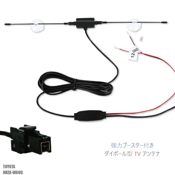 ワンセグフルセグ兼用★型式別ダイポールアンテナブースター内蔵型VR1端子〜メール便発送可能!定番ダイポール型アンテナ〜適合型式:トヨタ NHZA-W60G端子形状:VR1◆◆商品説明◆◆最適な電波状態を保つため、ナビ型式別に電気的な調整を施しています。上記適合型式以外での使用の場合は、お問い合わせください。商品番号:dav-nhza-w60g弊社提携工場での製造のため、品質を落とさず、価格を極限まで落とすことに成功しました。純正品ではありませんが、専門家監修により作成された製品ですので、御安心ください。ブースター内蔵型で独自に最適なアンテナゲインを調整しています。ブースターのないナビ、チューナーをお持ちの方でも外部入力電源で安定したブースター効果が得られます。12V車、24V車に対応しています。ワンセグからフルセグまで、地デジに対応した機器の外部アンテナとしてご使用いただけます。取付形状をよくご確認の上、お買い求めください。大量購入をご希望の方はお問い合わせください。◆◆商品詳細◆◆・ブースター内蔵型ケーブル長さ約3m・アンテナ全長28cm・出力想定20dB強力型↓よろしければこちらもご利用ください↓フィルムアンテナGPSプレート両面テープGPSフィルムアンテナ◆◆注意事項◆◆ご自身のアンテナ、コネクタご確認いただき、画像を確認の上御購入いただきますようお願い致します。天候・場所等により受信感度が悪くなる場合がありますが異常ではありません。アンテナブースターは現在受信している電波を電源により安定させる役割をもつ機能であり、微弱な電波を強くして映りを良くするものではありません。車種ごとの取付説明書はございませんのでご了承ください。電波の受信感度の向上を保証するものではありません。ワンセグの機種をフルセグにすることは出来ません。メール便発送の場合、万が一エレメントが折れたり曲がったりしていましても保証がありませんことをご了承の上ご入札願います。新品未使用品ですが外観の汚れ保管の際の傷等がある場合がございます。メール便での発送は厚み制限の関係上製品をそのまま封入する場合があります。御了承ください。外観の傷、商品の若干の傷等は使用上問題ありませんので、ご容赦ください完璧を求める方、極端に神経質な方の購入はご遠慮ください写真はイメージです写真と実際の商品の外観が予告なく変わる場合がありますが、使用には問題ありませんのでご理解くださいブラウザの関係で実際の色とは異なる場合がございます本商品は到着後7日間の初期不良対応が適用されます加工および一度使用した商品、両面テープを剥がした商品の返品及び交換には対応できません(到着後すぐに目視にて商品をご確認ください)吸盤が弱いという不良は保証範囲外とさせていただきます。(施工状態により大きく左右されるため)ノーサポート商品です。ご自身で取り付けできない場合は専門の知識を持った専門店で取付けを行うことをお勧めいたします ◆◆免責事項◆◆ 法律上の請求原因の種類を問わずいかなる場合においても、購入した製品自体、または製品の使用から生じた直接的、間接的な損害に関して、弊社はその一切の責任を負わないものとします
