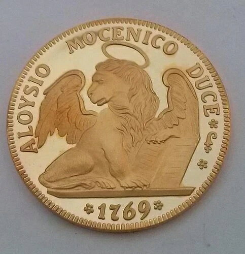 1769年 ヴェネツィア ワン・スクード ホールマーク付き銀貨 金メッキ 再鋳造