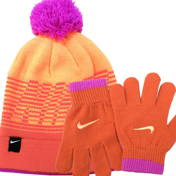 送料無料 NIKE ナイキ 子供 子供帽子 キッズ ニット帽 手袋 2ピースセット 防寒 サイズ7/16 54~56cm