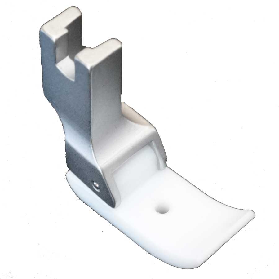 工業用ミシン・職業用ミシン用主に加工して使用する押さえになります。 テフロン製なのでカッターやヤスリなどで削ったりして加工することが出来ます。 皮やレザーの縫製に適している滑りのいい、テフロン製の押えになります。 押えの幅が13ミリで、押え部分には、針穴があいているだけの押えになります。 押えの幅:13ミリ 品番: NP-5 販売会社: 日邦ミシン(株)/ NIPPO 注意 この押えは、職業用ミシン・工業用ミシン(特殊ミシンを除く)用の押えになります。 家庭用ミシンには、取り付けることが出来ませんのでご注意ください。