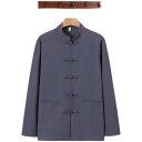 カンフーシャツ メンズ 長袖 中国風 レトロ トップス 羽織り コットンリネン チャイナボタン スタンドカラー 大きいサイズ ゆったり 唐装 シンプル カジュアル 白 黒 グレー