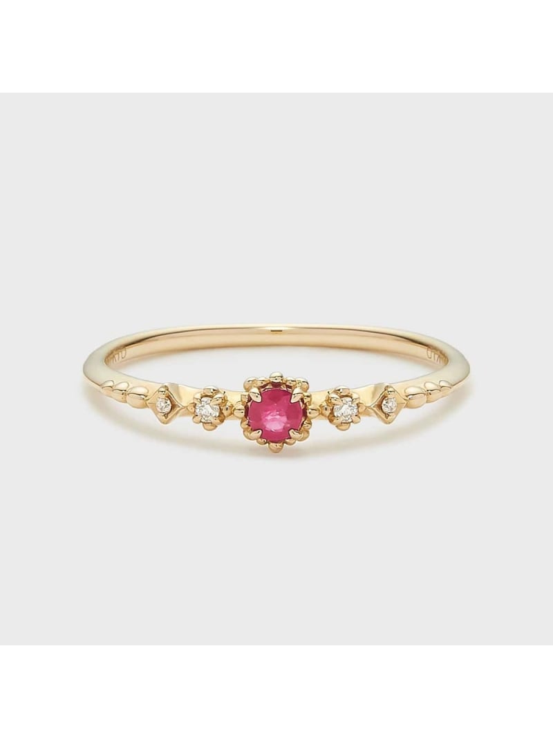 【予約商品について】 ※「先行予約販売中」「予約販売中」をご注文の際は予約商品についてをご確認ください。■重要なお知らせ※ 当店では、ギフト配送サービス及びラッピングサービスを行っておりません。ラッピング・ギフト配送について同時に複数の商品を注文された場合メーカー希望小売価格について置き配についてご利用ガイドNOJESS(ノジェス)【Pocket Ring】K10ルビーリング「Pocket Ring」ポケットに手を入れた時のようにすっぽりと収まる、温かな着け心地のレイヤードリング。キャンドルを灯してゆっくりと過ごす大切なひととき。キャンドルの小さな炎をイメージした石座に1石のルビーをセッティングしたリング。サイドのダイヤモンドが華やかさを添えます。それぞれの天然石が引き立つようシンプルなデザインに仕立てつつ、それぞれの石座に繊細な細工を施して表情豊かに仕上げました。 ※サイズ直しプラスマイナス2号迄。※天然石や天然素材を使用しているものは、サイズ・色味・風合いの違いや、若干の傷、内包物の有無などに個体差があります。予めご了承ください。型番:30234111124-06-009 JY5622【採寸】サイズ幅縦(トップ)横(トップ)13.0号0.120.40.411.0号0.120.40.49.0号0.120.40.4商品のサイズについて【商品詳細】素材:K10,Yellow,ruby,diamondサイズ:9.0号、11.0号、13.0号※画面上と実物では多少色具合が異なって見える場合もございます。ご了承ください。商品のカラーについて