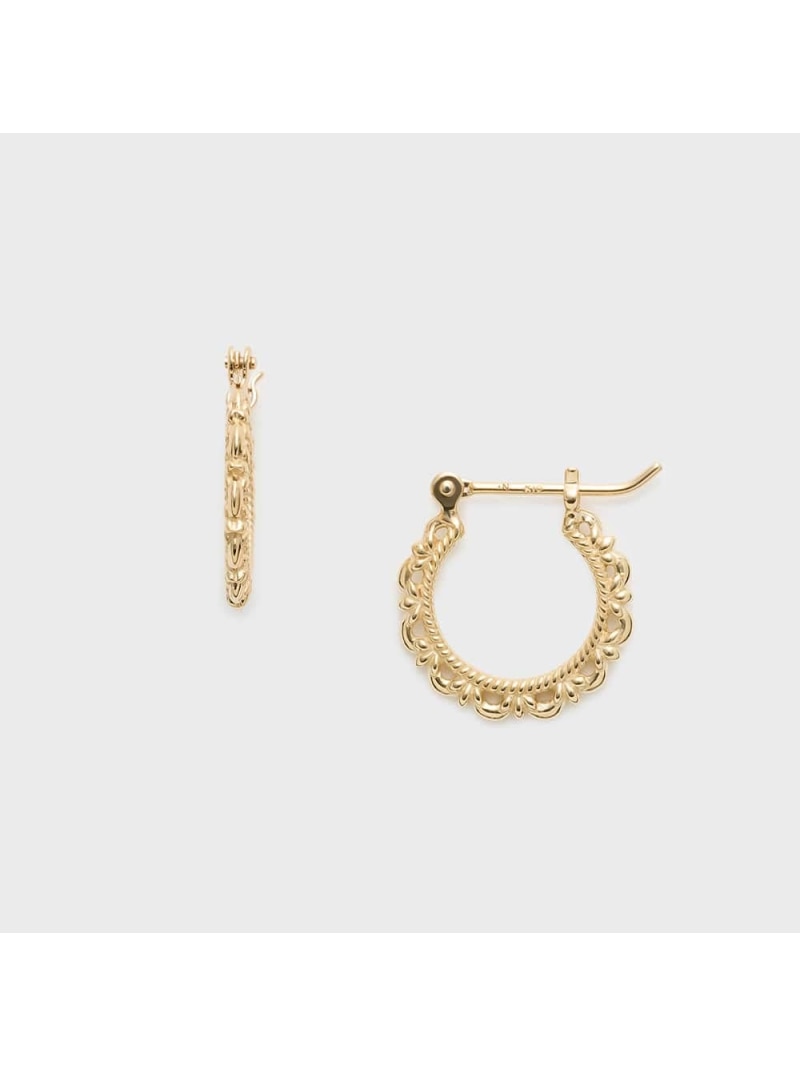 【予約商品について】 ※「先行予約販売中」「予約販売中」をご注文の際は予約商品についてをご確認ください。■重要なお知らせ※ 当店では、ギフト配送サービス及びラッピングサービスを行っておりません。ラッピング・ギフト配送について同時に複数の商品を注文された場合メーカー希望小売価格についてご利用ガイドNOJESS(ノジェス)K10ピアスレースのような繊細な地金装飾で仕立てたフープピアス。正面からはシンプルなシルエットで顔周りをすっきりと見せながら、顔を動かした時に見えてくる側面の繊細な透かし模様が印象的なデザイン。タイニーチャームを組み合わせたコーディネートもおすすめです。※シリコンキャッチ付き。※天然石や天然素材を使用しているものは、サイズ・色味・風合いの違いや、若干の傷、内包物の有無などに個体差があります。予めご了承ください。型番:30241112006-03-999 KH3873【採寸】サイズ縦横ポスト長フリー1.151.21商品のサイズについて【商品詳細】素材:K10,Yellowサイズ:フリー※画面上と実物では多少色具合が異なって見える場合もございます。ご了承ください。商品のカラーについて