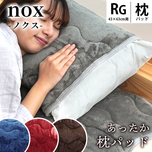 【4日20時〜SALE】あったか 枕パッド 43×63cm用 実寸50×60cm 表地 フランネル nox ノクス 当社限定 枕カバー まくらカバー 洗える ウォッシャブル ブラウン ネイビー グレー レッド 節電