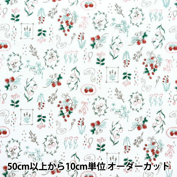 【数量5から】 生地 『NOVA オックス ジュエリーボックス いちご ホワイト NOX-JSTR-WH』 KOKKA コッカ