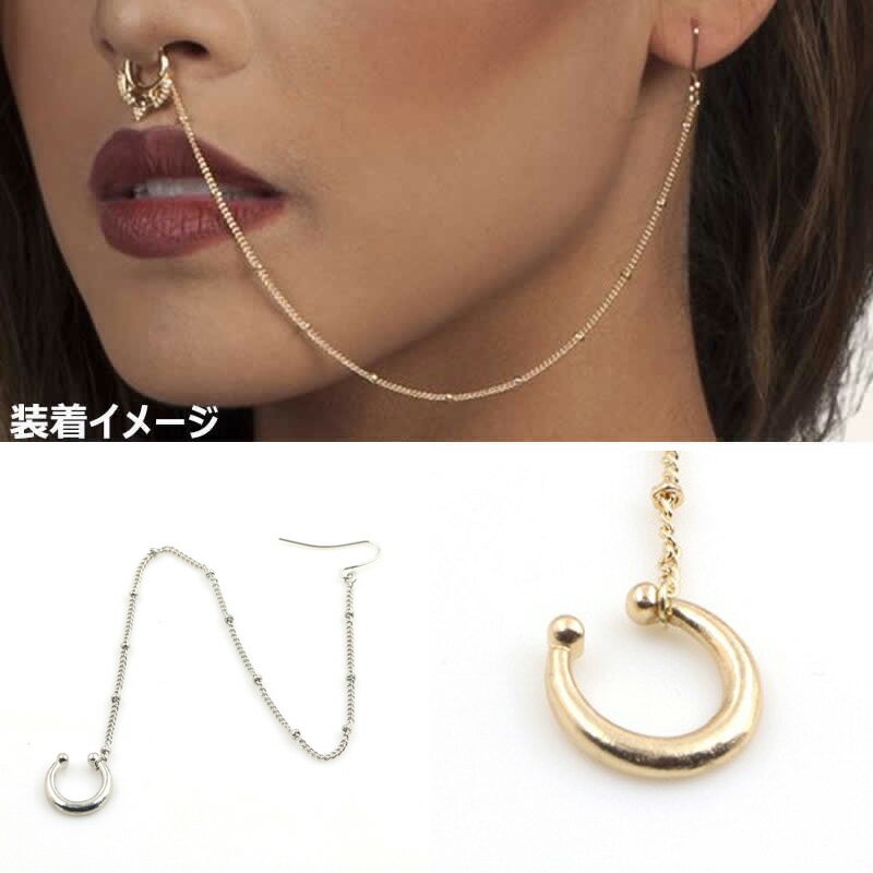 [ 鼻ピアスと耳のピアスとつなげる] ドナート フェイク鼻ピアス セプタム チェーン付き ノーズクリップ 耳たぶ 軟骨 イヤーカフ ヘリックス メンズ レディース イヤリング ノーズリング ゴールドシルバー 軟骨 はさむ ステンレスピアス フックピアス 金色 銀色 シンプル 人気