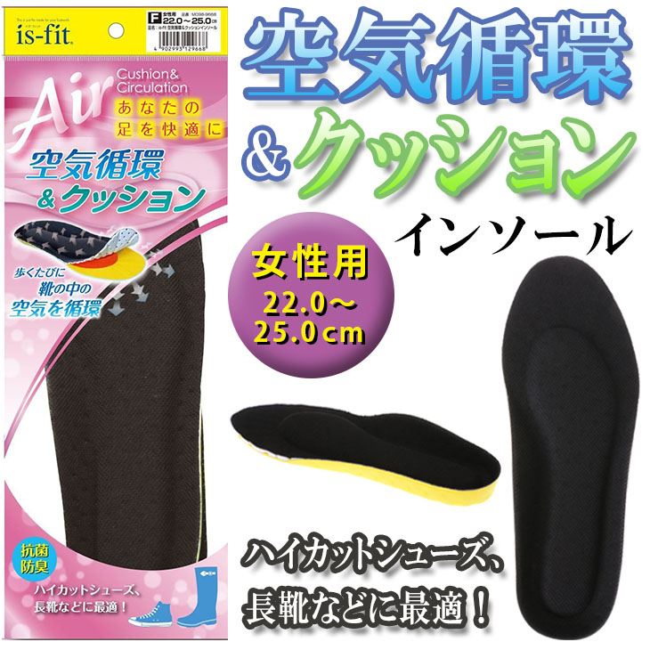 【ゆうパケット対応可能】is-fit 空気循環&クッション インソール 女性用 22.0〜25.0cm 通気性 衝撃吸収 抗菌防臭 ハイカットシューズ 長靴