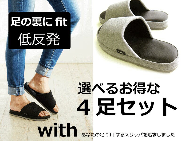 モノトーン スリッパ ルームシューズ 室内用【送料無料】選べる4足セット『with』足のうらにfitウィズ低反発 スリッパルームシューズ あなたの足にfitするスリッパを追求しました お洒落おしゃれ オクムラ