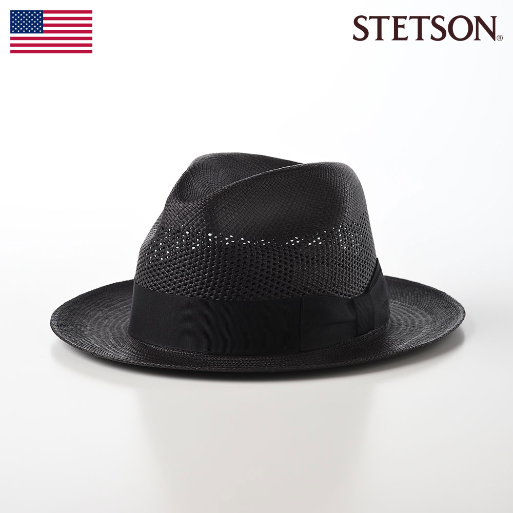 STETSON パナマハット パナマ帽 中折れハット メンズ 帽子 本パナマ 春 夏 透かし編み 涼しい サイズ調整可 カジュアル フォーマル おしゃれ アメリカブランド ステットソン VEN BASIC PANAMA(ベン ベーシックパナマ)SE586 ブラック 熱中症 暑さ対策