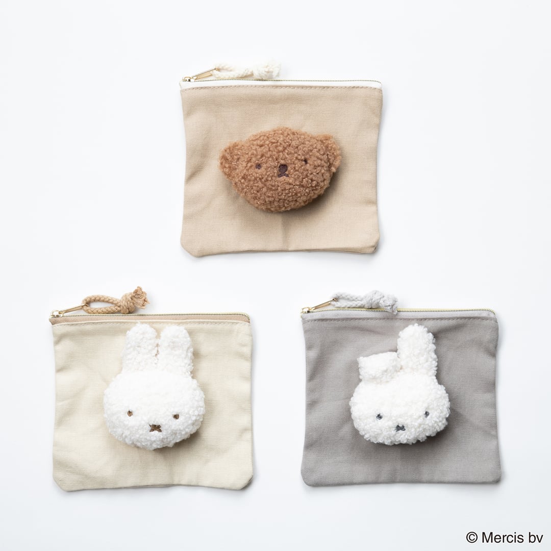 ミッフィー、ボリス、ダーンの立体的なお顔が付いたシリーズ。 裏面の織ネームもポイントです。目薬やリップが入るコンパクトなサイズです。 SIZE:W140×H120mm 素材:本体:綿、キャラクター部分:ポリエステル