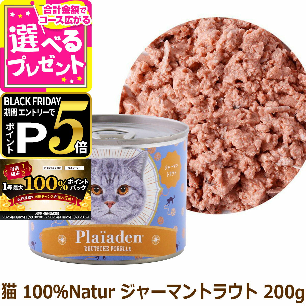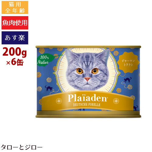 【最短お届け可能】【選べるおまけ付】Plaiaden プレイアーデン 100% Natur ジャーマントラウト 200g×6缶 猫用 ウェットフード 缶詰 キャットフード
