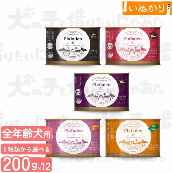 Plaiaden プレイアーデン 犬用 ウェットフード 200g×12缶 各種【ドイツ牛/ドイツ豚/チキン/野うさぎ/ドイツ鱒】【100%有機 100%Wild 100%Natur】ドッグフード 缶詰