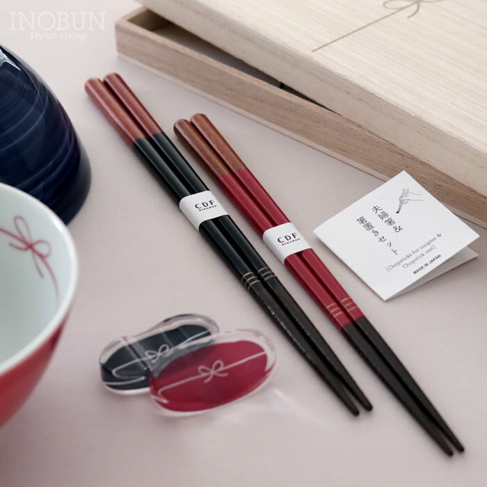 Kadode 門出 夫婦箸&箸置きセット ネイビー×レッド 日本製 ペアギフト 桐箱入り 御祝い 新生活
