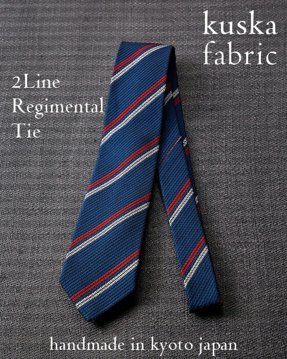 kuska クスカ 2ラインレジメンタルタイ ネイビー×レッド ネクタイ 紺 国産 日本製 シルク 絹 手織り 職人 ギフト 贈答品 京都 丹後 ブランド 高級 ビジネス 父の日 成人式 ストライプ