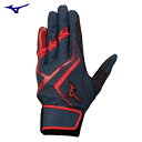 ミズノ 野球 バッティンググローブ 両手用 ウィルドライブ レッド 1EJEA54514 手袋 ネイビー×レッド