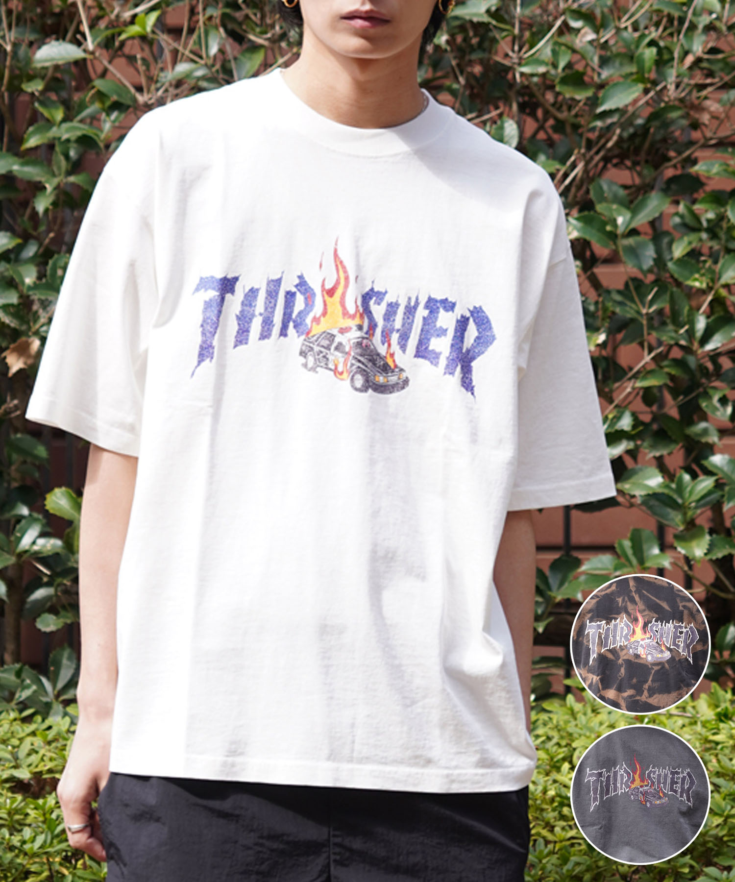 THRASHER スラッシャー メンズ 半袖 Tシャツ ピグメント染 NECKFACE ネックフェイス ビッグシルエット バックプリント ボックスシルエット THM-24SPSST03 ムラサキスポーツ限定