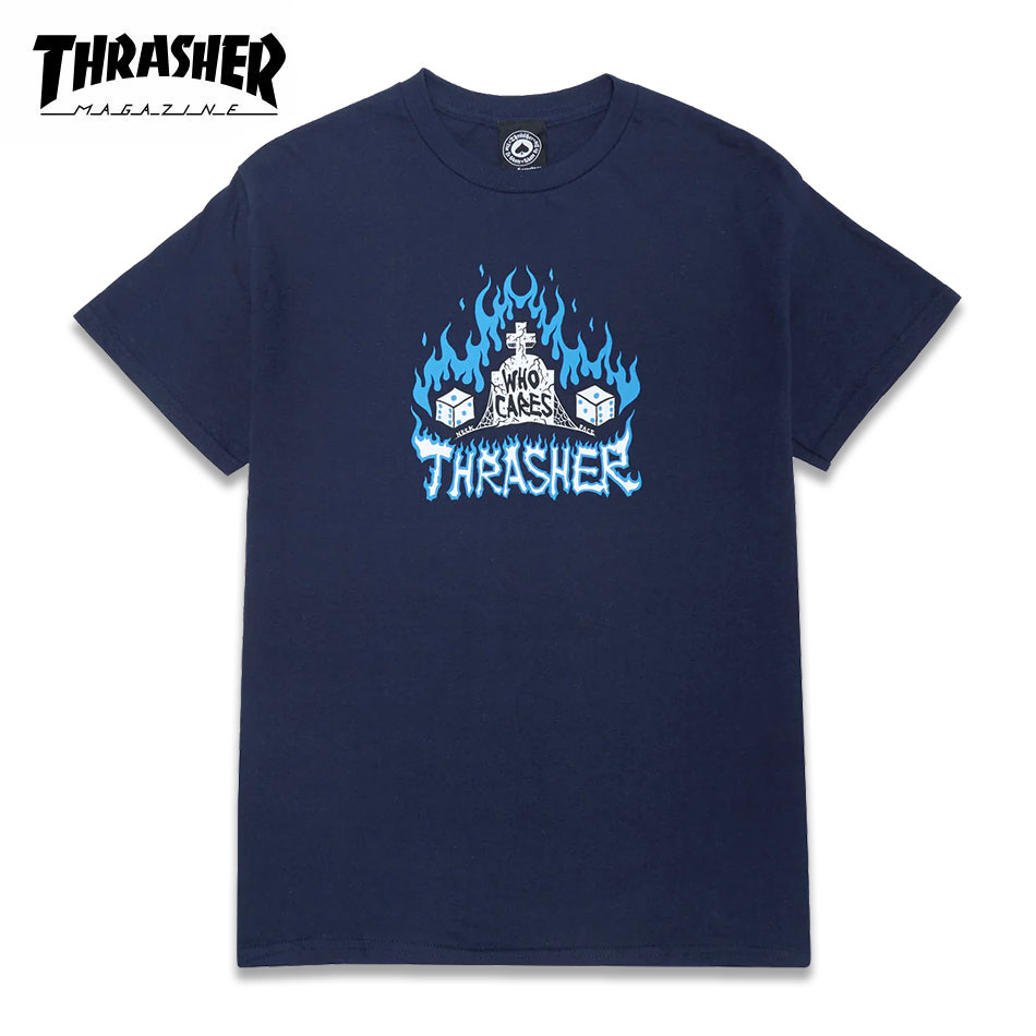 THRASHER T-SHIRT スラッシャー Tシャツ WHO CARES BY NECKFACE NAVY(US企画) スケートボード スケボー