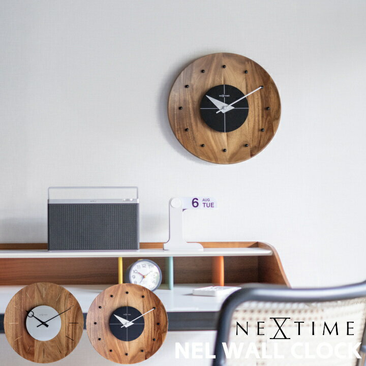 NEXTIME 掛け時計 ネクスタイム 木製 壁掛け時計 ウォールクロック NEL CLOCK ネルクロック 丸形 おしゃれ 静か 音がしない スイープムーブメント 連続秒針 静音 ウッドクロック リビング 寝室 北欧 モダン ビンテージ ミッドセンチュリー NXT-J037 NXT-J038
