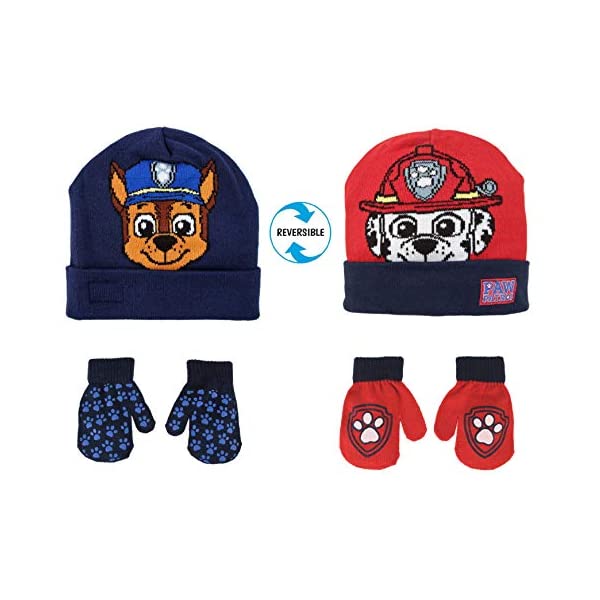 パウパトロール チェイス マーシャル リバーシブル ニット帽 帽子 キットキャップ 手袋 グローブ 防寒 キッズ 子供 Nickelodeon Boys Paw Patrol Winter Hat, 2 Pair Gloves or Mittens (Toddler/Little Boys)