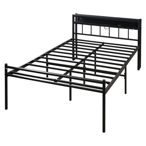 Nijakiseベッドフレームシングルベッド棚付きコンセント付き頑丈なスチルパイプ耐荷重150kg静音ベッド下収納耐久性通気性パイプベッド頑丈スチール組み立て簡単工具付き一人暮らし