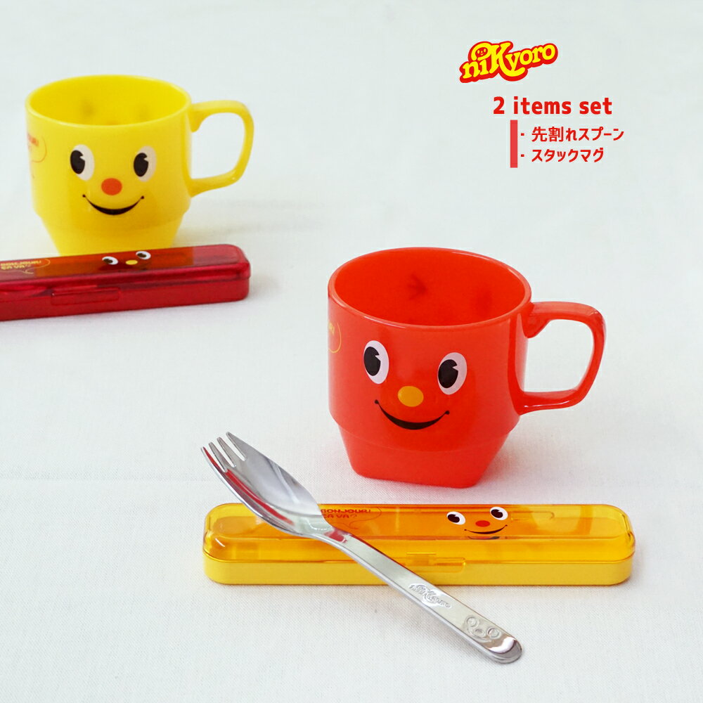 【店内最大P5倍】 スプーン フォーク マグカップ カトラリー 子ども 子供 お弁当 弁当 食器セット 【 ニッキョロ 先割れスプーン ケース & キッズ スタック マグ セット】 女子 男子 幼稚園 プレゼント スタッキング おしゃれ お弁当箱 個包装 記念品 日本製