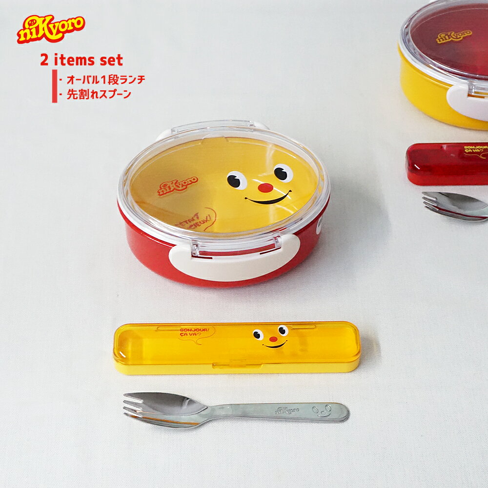 【店内最大P5倍】 お弁当箱 ランチボックス おしゃれ 子供 プレゼント 箸 お箸 フォーク スプーン 食洗機対応 レンジ対応 【 ニッキョロ カトラリートリオ & キッズ オーバル 1段 弁当箱 セット 】 子ども 女子 男子 ギフト 幼稚園 小学生 お弁当 入園 日本製 400ml以下