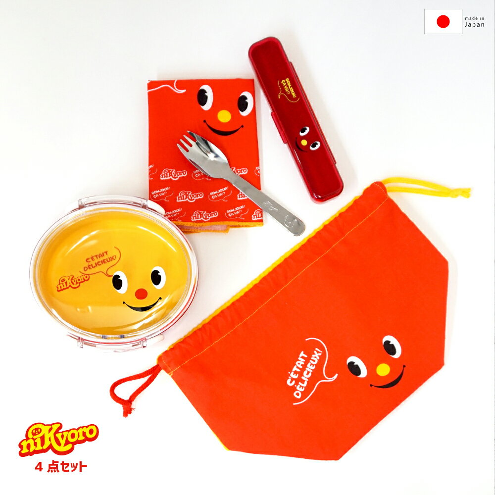 お弁当箱 弁当箱 ランチボックス お弁当袋 子供 おしゃれ 保冷バッグ 食洗機対応 レンジ 【 ニッキョロ キッズ オーバル 1段 ランチ & 先割れスプーン & 巾着 ポーチ & ミニ ハンカチ 4点 セット 】 プレゼント 子ども 女子 男子 幼稚園 小学生 スプーン 日本製 400ml以下
